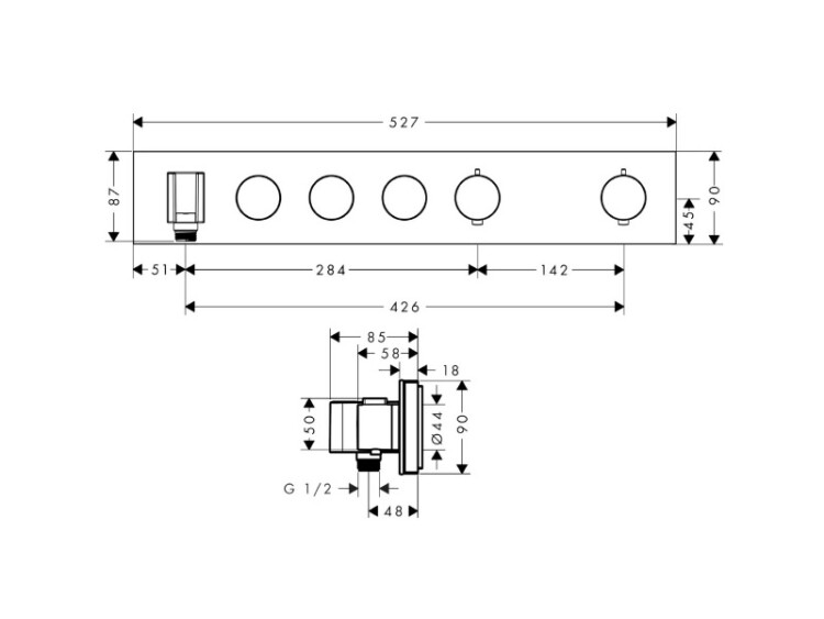 Смеситель для душа, Hansgrohe, Axor ShowerSolutions, тип регулирования воды-термостатический картридж, тип установки-встраиваемый, внутренняя часть-необходимо заказать, предохранительный ограничитель при 40°C, регулируемое ограничение температуры, 3 потребителя , кнопка включения/выключения Select, FixFit и Porter, защита от обратного тока воды, кнопка Rain large, кнопка водопад, кнопка ручного душа, встроенный держатель душа, цвет-полированный черный хром Смеситель для душа, Hansgrohe, Axor ShowerSolutions, цвет-полированный черный хром
