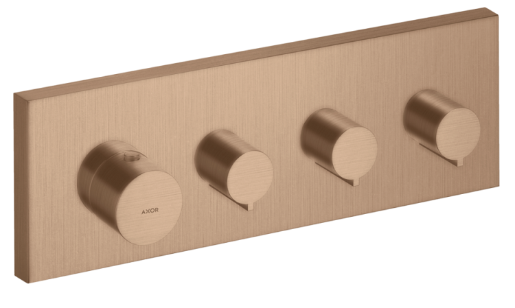 Смеситель для душа, Hansgrohe, Axor ShowerSolutions, тип регулирования воды-термостатический картридж, тип установки-встраиваемый, внутренняя часть-необходимо заказать, цвет-шлифованное красное золото, 3 потребителя, предохранительный ограничитель при 40°C, регулируемое ограничение температуры Смеситель для душа, Hansgrohe, Axor ShowerSolutions, цвет-шлифованное красное золото