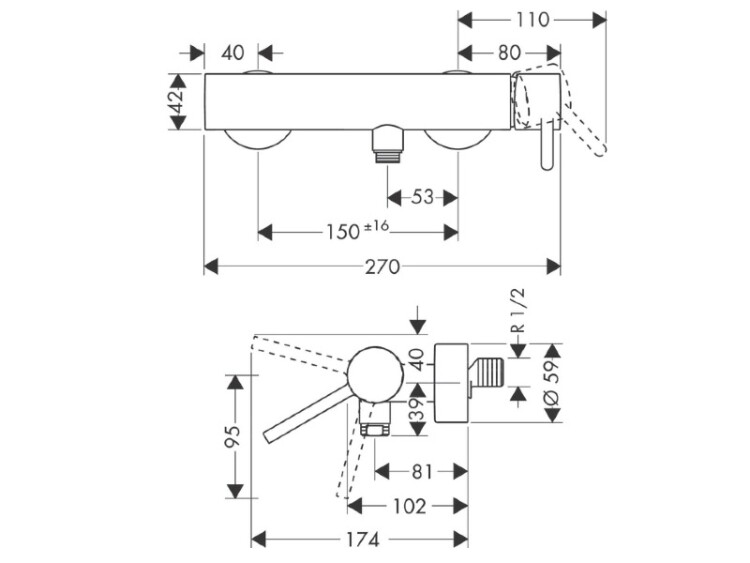 Смеситель для душа, Hansgrohe, Axor Starck, тип открывания воды-однорычажный, тип регулирования воды-керамический узел смешивания, тип установки-настенный, отверстия для монтажа-2, цвет-полированное золото, регулируемое ограничение температуры, клапан обратного тока воды, с шумопоглотителем, шланговое подсоединение Смеситель для душа, Hansgrohe, Axor Starck, цвет-полированное золото