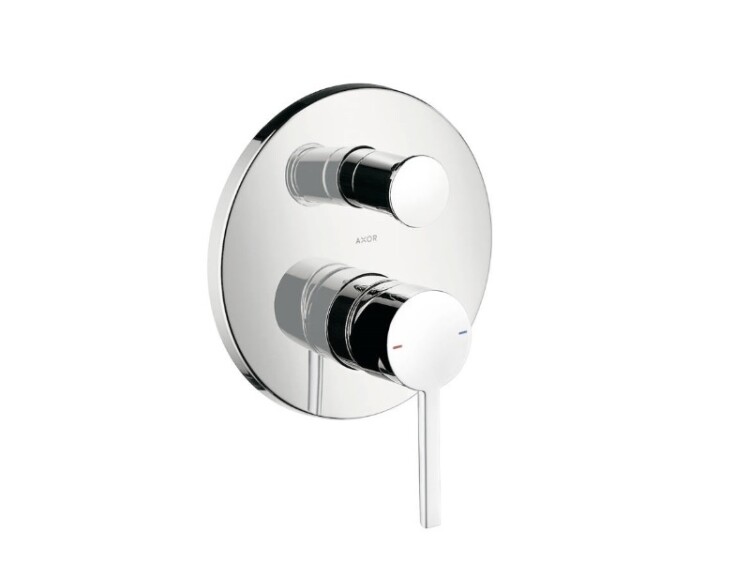 Смеситель для душа, Hansgrohe, Axor Starck, тип открывания воды-однорычажный, тип регулирования воды-керамический узел смешивания, тип установки-встраиваемый, внутренняя часть-необходимо заказать, цвет-полированное золото, регулируемое ограничение температуры, с переключателем вакуумного типа Смеситель для душа, Hansgrohe, Axor Starck, цвет-полированное золото