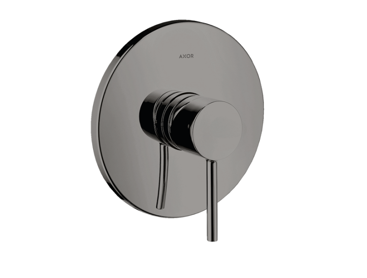 Смеситель для душа, Hansgrohe, Axor Starck, тип открывания воды-однорычажный, тип регулирования воды-керамический узел смешивания, тип установки-встраиваемый, отверстия для монтажа-1, внутренняя часть-необходимо заказать, цвет-полированный черный хром, регулируемое ограничение температуры, с шумопоглотителем Смеситель для душа, Hansgrohe, Axor Starck, цвет-полированный черный хром