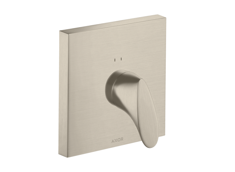 Смеситель для душа, Hansgrohe, Axor Starck Organic, тип открывания воды-однорычажный, тип регулирования воды-керамический узел смешивания, тип установки-встраиваемый, отверстия для монтажа-1, внутренняя часть-необходимо заказать, цвет-шлифованный никель, регулируемое ограничение температуры с шумопоглотителем Смеситель для душа, Hansgrohe, Axor Starck Organic, цвет-шлифованный никель