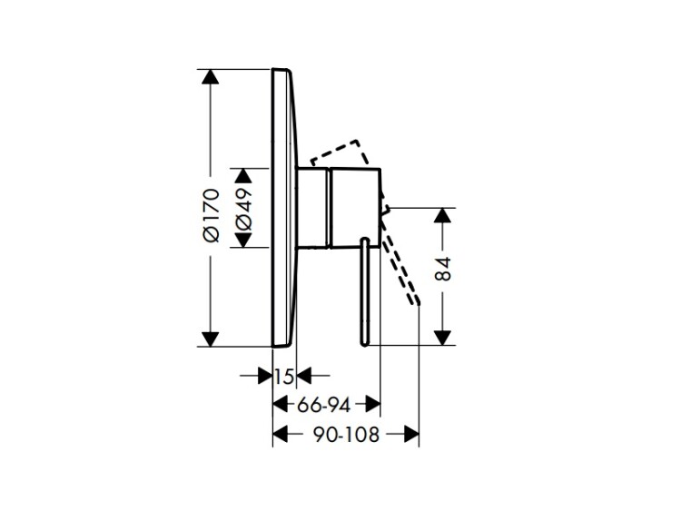 Смеситель для душа, Hansgrohe, Axor Uno, тип открывания воды-однорычажный, тип установки-встраиваемый, вид ручки-петля, внутренняя часть-необходимо заказать, цвет-хром, регулируемое ограничение температуры, с шумопоглотителем Смеситель для душа, Hansgrohe, Axor Uno, цвет-хром