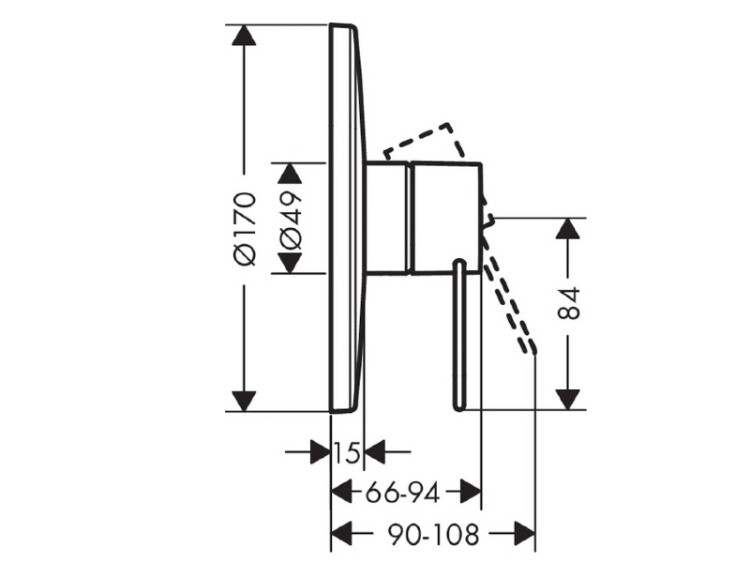 Смеситель для душа, Hansgrohe, Axor Uno, тип открывания воды-однорычажный, тип регулирования воды-керамический узел смешивания, тип установки-встраиваемый, отверстия для монтажа-1, вид ручки-петля, внутренняя часть-необходимо заказать, цвет-шлифованный черный хром, регулируемое ограничение температуры, с шумопоглотителем Смеситель для душа, Hansgrohe, Axor Uno, цвет-шлифованный черный хром