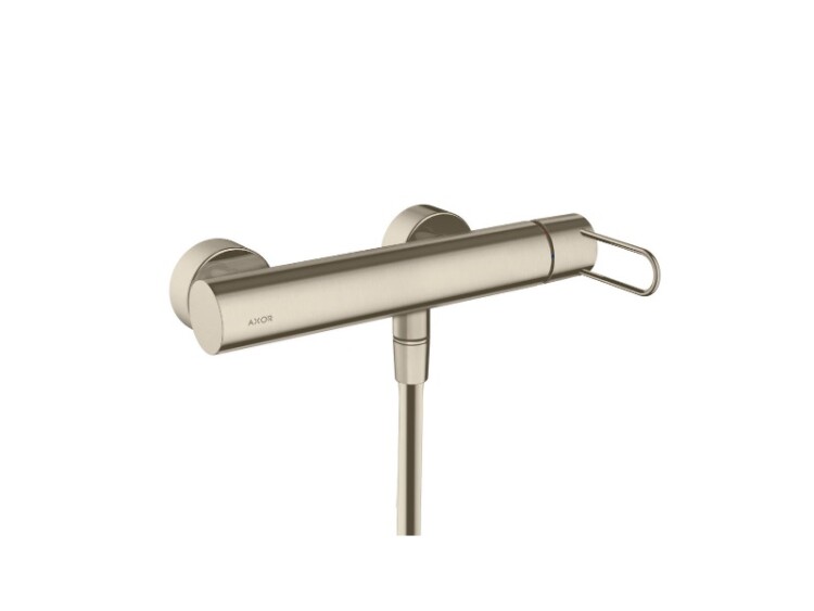 Смеситель для душа, Hansgrohe, Axor Uno, тип открывания воды-однорычажный, тип установки-настенный, отверстия для монтажа-2, вид ручки-петля, цвет-шлифованный никель, регулируемое ограничение температуры, клапан обратного тока воды, с шумопоглотителем, шланговое подсоединение Смеситель для душа, Hansgrohe, Axor Uno, цвет-шлифованный никель