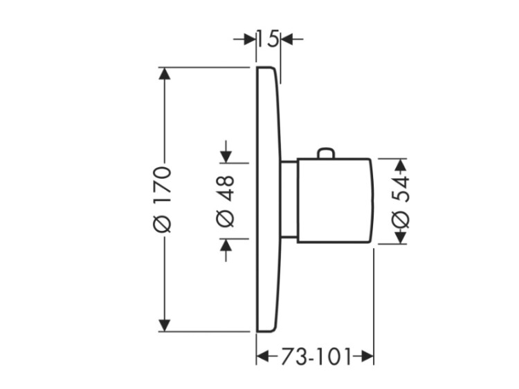 Смеситель для душа, Hansgrohe, Axor Uno, тип регулирования воды-термостатический картридж, тип установки-встраиваемый, отверстия для монтажа-1, внутренняя часть-необходимо заказать, цвет-шлифованный никель, предохранительный ограничитель при 38° C, регулируемое ограничение температуры Смеситель для душа, Hansgrohe, Axor Uno, цвет-шлифованный никель