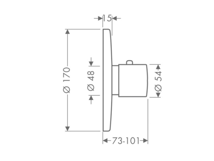 Смеситель для душа, Hansgrohe, Axor Uno, тип регулирования воды-термостатический картридж, тип установки-встраиваемый, отверстия для монтажа-1, внутренняя часть-необходимо заказать, цвет-шлифованный никель, предохранительный ограничитель при 40°C, регулируемое ограничение температуры, с шумопоглотителем Смеситель для душа, Hansgrohe, Axor Uno, цвет-шлифованный никель