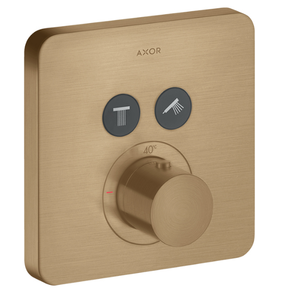 Смеситель для душа, Axor, Axor Showerselect, на 2 потребителя, тип открывания воды-однорычажный, тип регулирования воды-термостатический картридж, монтаж-настенный встраиваемый, отверстия для монтажа-1, внутренняя часть-необходимо заказать, цвет-бронза шлифованная Смеситель для душа, Axor, Axor Showerselect, на 2 потребителя, цвет-бронза шлифованная