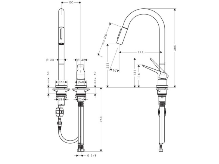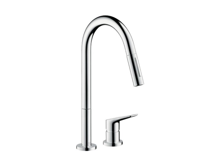 Смеситель для кухни, Hansgrohe, Axor Citterio M, тип открывания воды-однорычажный, тип регулирования воды-керамический узел смешивания, отверстия для монтажа-2, высота, мм-405, вынос излива, мм-221, тип излива-поворотный, выдвижной, дополнительные функции-выдвижной душ, тип подводки-гибкая, стандарт подвода воды-3/8", цвет-шлифованное красное золото, угол поворота излива-регулировка на 2 уровня, на 110° или 150°, переключение струи в исходное положение нажатием кнопки, магнитная система крепления душа MagFit, душевой шланг Quick-Connect Смеситель для кухни, Hansgrohe, Axor Citterio M, цвет-шлифованное красное золото