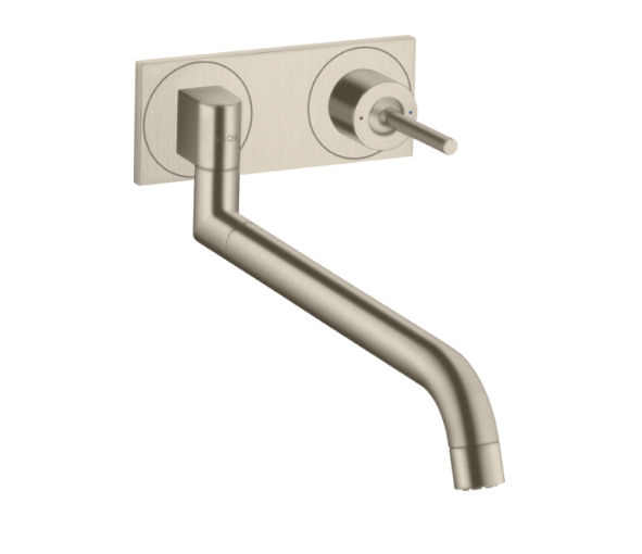 Смеситель для кухни, Axor, Axor Uno, тип открывания воды-однорычажный, тип регулирования воды-керамический картридж, монтаж-настенный, отверстия для монтажа-2, вынос излива, мм-500, тип излива-поворотный, тип подводки-жесткая, цвет-никель шлифованный Смеситель для кухни, Axor, Axor Uno, цвет-никель шлифованный