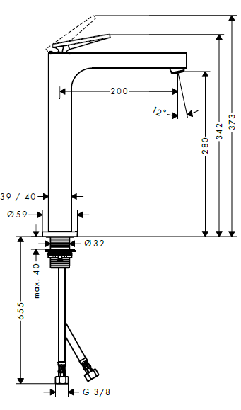 Смеситель для раковины, Axor, Axor Citterio, тип открывания воды-однорычажный, тип регулирования воды-керамический картридж, монтаж-на раковину/столешницу, отверстия для монтажа-1, высота, мм-342, вынос излива, мм-200, тип излива-неподвижный, донный клапан-есть, тип подводки-гибкая, стандарт подвода воды-3/8", со сливным гарнитуром, цвет-хром черный шлифованный Смеситель для раковины, Axor, Axor Citterio, цвет-хром черный шлифованный