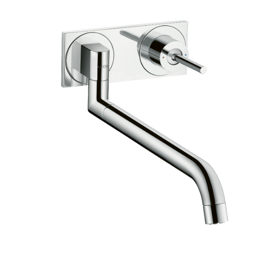 Смеситель для кухни, Axor, Axor Uno, тип открывания воды-однорычажный, тип регулирования воды-керамический картридж, монтаж-настенный, отверстия для монтажа-2, вынос излива, мм-500, тип излива-поворотный, тип подводки-жесткая, цвет-сталь Смеситель для кухни, Axor, Axor Uno, цвет-сталь