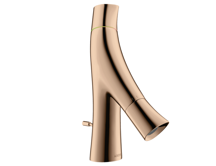 Смеситель для раковины, Hansgrohe, Axor Starck Organic, душевая струя с QuickClean, раздельная регулировка температуры и напора поворотным движением, расход воды 3,5 л/мин, режим с расходом воды 5 л/мин, донный клапан 1¼, ограничитель температуры воды, канал с водой отделен от корпуса, подходит для проточных водонагревателей, необходима установка редукторов (регуляторов давления) на вводе воды в помещение, цвет плированное красное золото Смеситель для раковины, цвет полированное красное золото