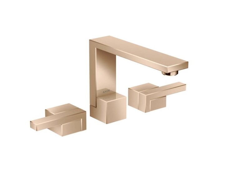 Смеситель для раковины, Axor, Axor Edge, тип открывания воды-рычажный, тип регулирования воды-керамический картридж, монтаж-горизонтальный (на раковину/столешницу), отверстия для монтажа-3, высота, мм-154, вынос излива, мм-173, стандарт подвода воды-3/8", цвет-полированное красное золото Смеситель для раковины, Axor, Axor Edge, цвет-полированное красное золото