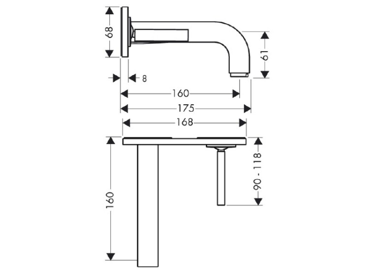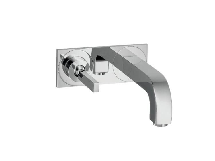 Смеситель для раковины, Hansgrohe, Axor Citterio, тип открывания воды-однорычажный, тип регулирования воды-керамический узел смешивания, тип установки-настенный, отверстия для монтажа-2, вынос излива, мм-160, вид ручки-джойстикового типа, внутренняя часть-необходимо заказать, цвет-хром, с возможностью размещения рукоятки справа или слева Смеситель для раковины, Hansgrohe, Axor Citterio, цвет-хром
