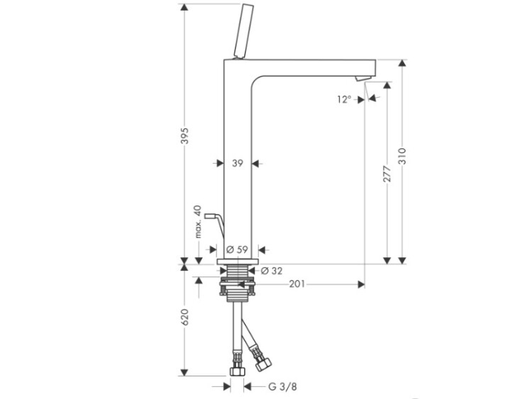 Смеситель для раковины, Hansgrohe, Axor Citterio, тип открывания воды-однорычажный, тип регулирования воды-керамический узел смешивания, отверстия для монтажа-1, высота, мм-395, вынос излива, мм-201, вид ручки-джойстикового типа, донный клапан-есть, тип подводки-гибкая, стандарт подвода воды-3/8", цвет-хром Смеситель для раковины, Hansgrohe, Axor Citterio, цвет-хром
