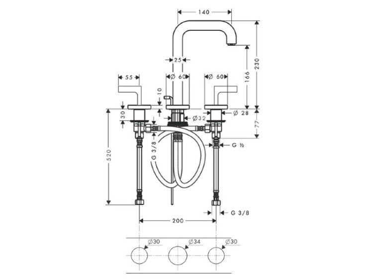 Смеситель для раковины, Hansgrohe, Axor Citterio, тип открывания воды-двухрычажный, тип регулирования воды-керамический вентиль, отверстия для монтажа-3, высота, мм-230, вынос излива, мм-140, вид ручки-рычаговая рукоятка, донный клапан-есть, стандарт подвода воды-3/8", цвет-хром Смеситель для раковины, Hansgrohe, Axor Citterio, цвет-хром