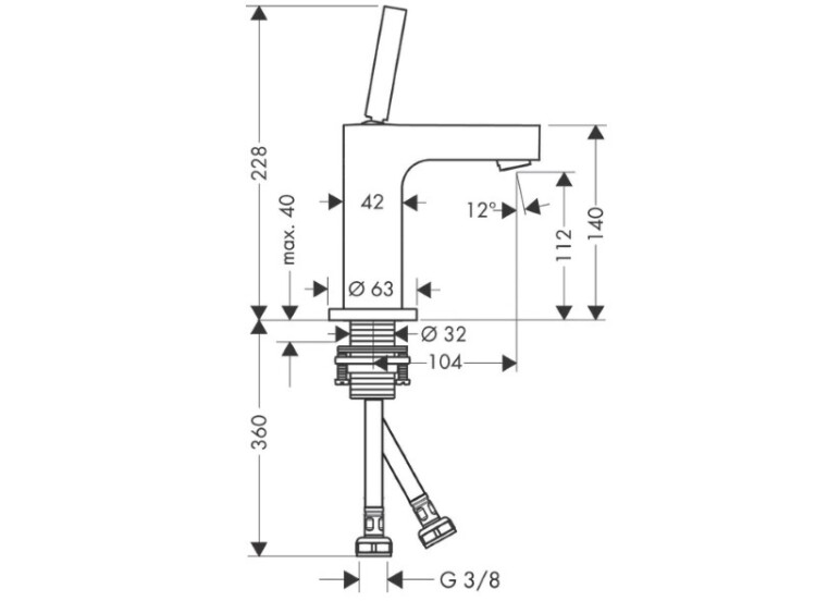 Смеситель для раковины, Hansgrohe, Axor Citterio, тип открывания воды-однорычажный, тип регулирования воды-керамический узел смешивания, отверстия для монтажа-1, высота, мм-228, вынос излива, мм-104, вид ручки-джойстикового типа, тип подводки-гибкая, стандарт подвода воды-3/8", цвет-хром Смеситель для раковины, Hansgrohe, Axor Citterio, цвет-хром