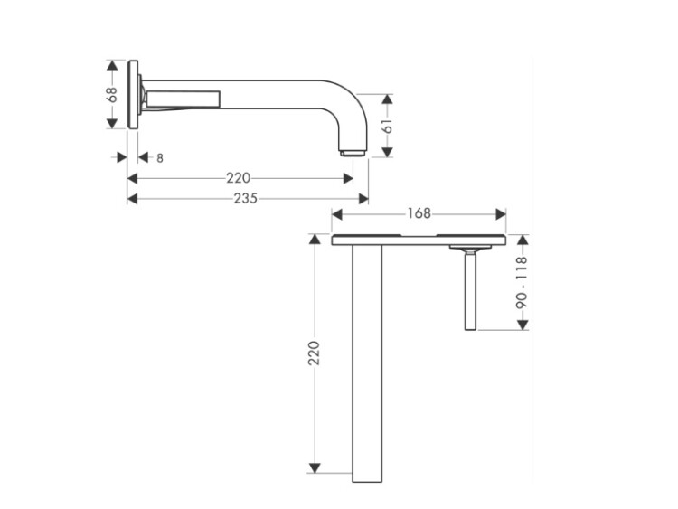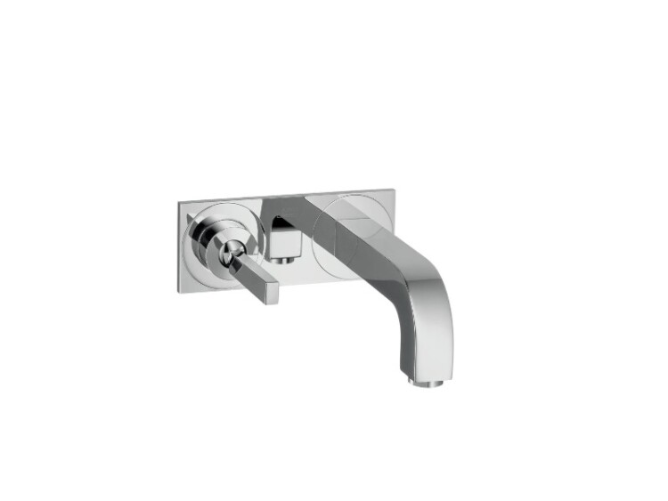 Смеситель для раковины, Hansgrohe, Axor Citterio, тип открывания воды-однорычажный, тип регулирования воды-керамический узел смешивания, тип установки-настенный, вынос излива, мм-225, вид ручки-джойстикового типа, внутренняя часть-необходимо заказать, цвет-шлифованное золото, с возможностью размещения рукоятки справа или слева, с панелью Смеситель для раковины, Hansgrohe, Axor Citterio, цвет-шлифованное золото