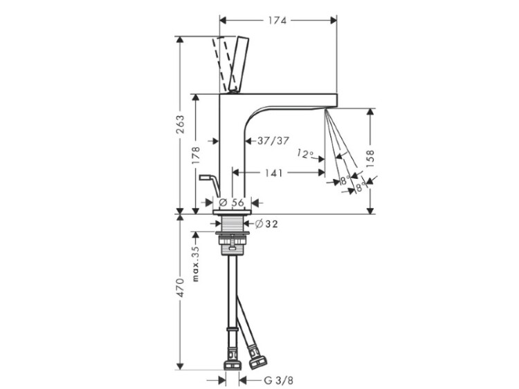 Смеситель для раковины, Hansgrohe, Axor Citterio, тип открывания воды-однорычажный, тип регулирования воды-керамический узел смешивания, отверстия для монтажа-1, высота, мм-263, вынос излива, мм-141, вид ручки-джойстикового типа, донный клапан-есть, тип подводки-гибкая, стандарт подвода воды-3/8", цвет-шлифованный никель, регулируемый формирователь струи Смеситель для раковины, Hansgrohe, Axor Citterio, цвет-шлифованный никель