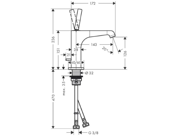 Смеситель для раковины, Hansgrohe, Axor Citterio E, тип открывания воды-однорычажный, тип регулирования воды-керамический узел смешивания, отверстия для монтажа-1, высота, мм-236, вынос излива, мм-143, вид ручки-джойстикового типа, донный клапан-есть, стандарт подвода воды-3/8", цвет-хром Смеситель для раковины, Hansgrohe, Axor Citterio E, цвет-хром