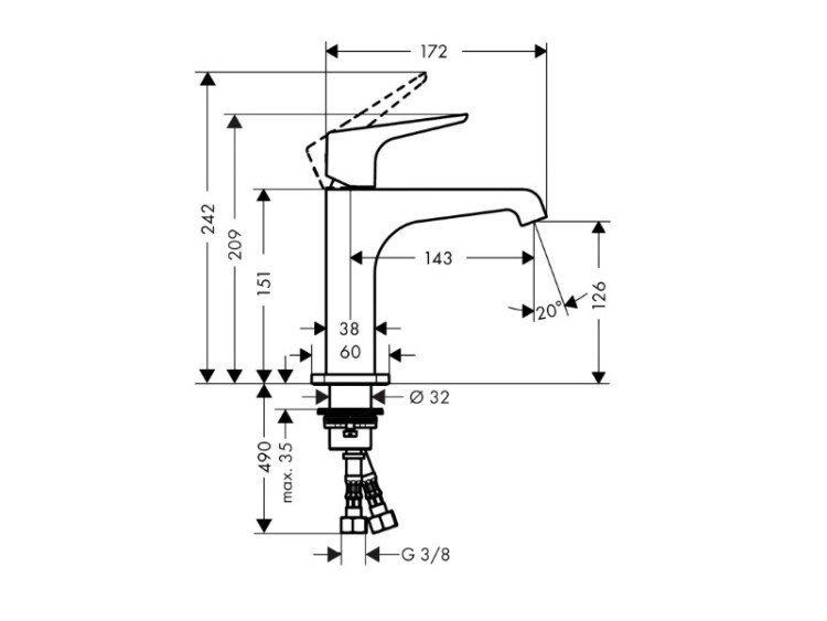 Смеситель для раковины, Hansgrohe, Axor Citterio E, тип открывания воды-однорычажный, тип регулирования воды-керамический узел смешивания, отверстия для монтажа-1, высота, мм-209, вынос излива, мм-143, донный клапан-есть, стандарт подвода воды-3/8", цвет-хром Смеситель для раковины, Hansgrohe, Axor Citterio E, цвет-хром