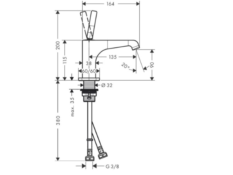 Смеситель для раковины, Hansgrohe, Axor Citterio E, тип открывания воды-однорычажный, тип регулирования воды-керамический узел смешивания, отверстия для монтажа-1, высота, мм-200, вынос излива, мм-135, вид ручки-джойстикового типа, стандарт подвода воды-3/8", цвет-хром Смеситель для раковины, Hansgrohe, Axor Citterio E, цвет-хром