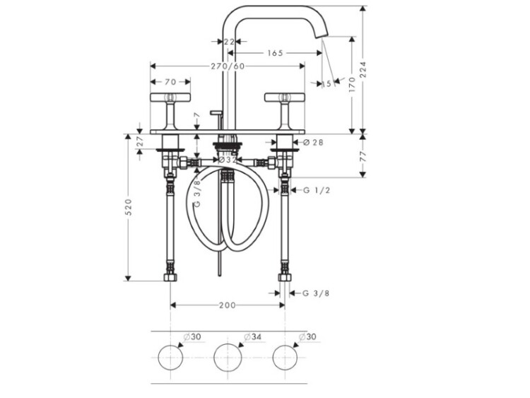 Смеситель для раковины, Hansgrohe, Axor Citterio E, тип открывания воды-двухвентильный, тип регулирования воды-керамический вентиль, отверстия для монтажа-3, высота, мм-224, вынос излива, мм-165, донный клапан-есть, стандарт подвода воды-3/8", цвет-хром, комплектация-панель Смеситель для раковины, Hansgrohe, Axor Citterio E, цвет-хром
