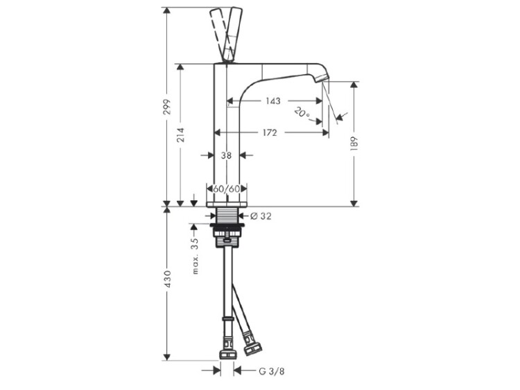 Смеситель для раковины, Hansgrohe, Axor Citterio E, тип открывания воды-однорычажный, тип регулирования воды-керамический узел смешивания, отверстия для монтажа-1, высота, мм-299, вынос излива, мм-143, вид ручки-джойстикового типа, стандарт подвода воды-3/8", цвет-хром Смеситель для раковины, Hansgrohe, Axor Citterio E, цвет-хром