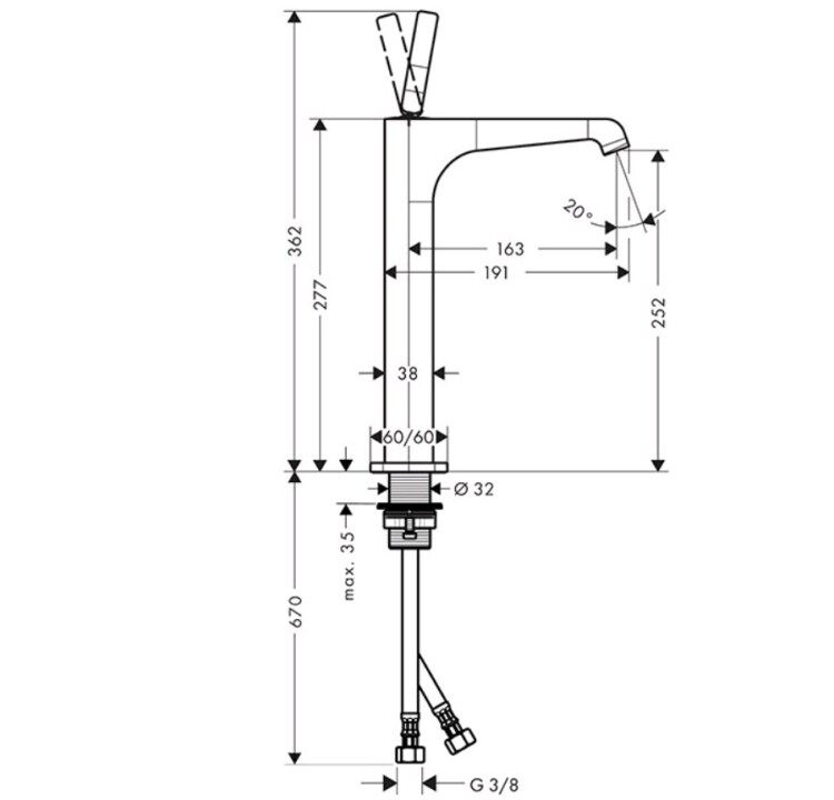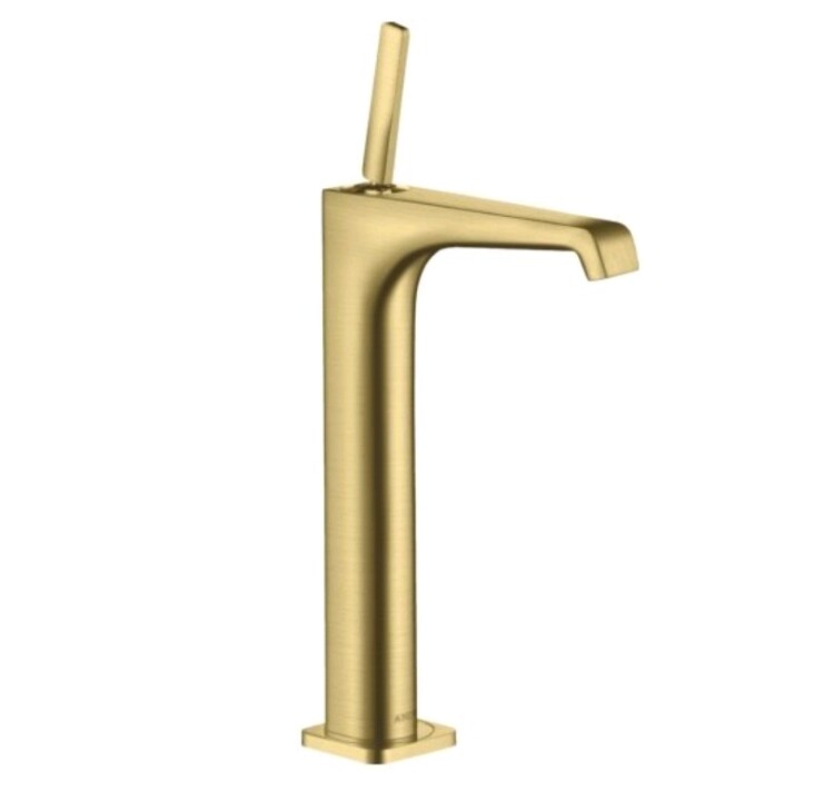 Смеситель для раковины, Hansgrohe, Axor Citterio E, тип открывания воды-однорычажный, вид ручки-джойстикового типа, тип регулирования воды-керамический картридж, монтаж-на раковину/столешницу, отверстия для монтажа-1, высота, мм-362, вынос излива, мм-163, тип излива-неподвижный, донный клапан-отсутствует, тип подводки-гибкая, стандарт подвода воды-3/8", цвет-латунь шлифованная Смеситель для раковины, Hansgrohe, Axor Citterio E, цвет-латунь шлифованная