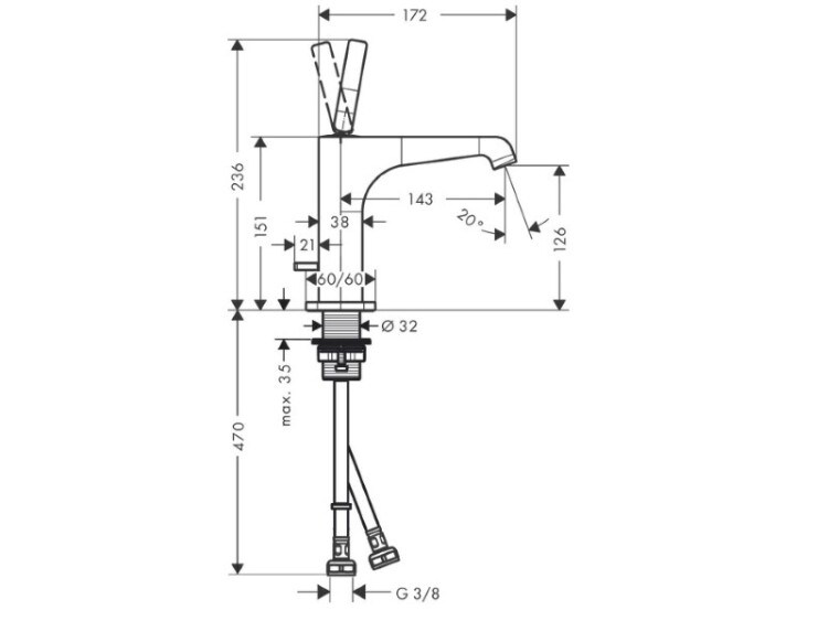 Смеситель для раковины, Hansgrohe, Axor Citterio E, тип открывания воды-однорычажный, тип регулирования воды-керамический узел смешивания, отверстия для монтажа-1, высота, мм-236, вынос излива, мм-143, вид ручки-джойстикового типа, донный клапан-есть, стандарт подвода воды-3/8", цвет-полированная бронза Смеситель для раковины, Hansgrohe, Axor Citterio E, цвет-полированная бронза