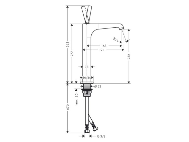 Смеситель для раковины, Hansgrohe, Axor Citterio E, тип открывания воды-однорычажный, тип регулирования воды-керамический узел смешивания, отверстия для монтажа-1, высота, мм-362, вынос излива, мм-163, вид ручки-джойстикового типа, стандарт подвода воды-3/8", цвет-полированная бронза Смеситель для раковины, Hansgrohe, Axor Citterio E, цвет-полированная бронза