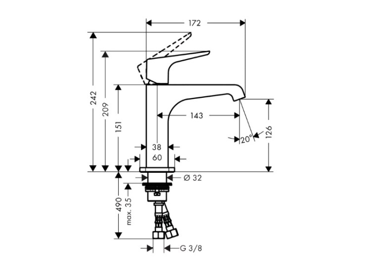 Цвет ручки | в цвет смесителя |