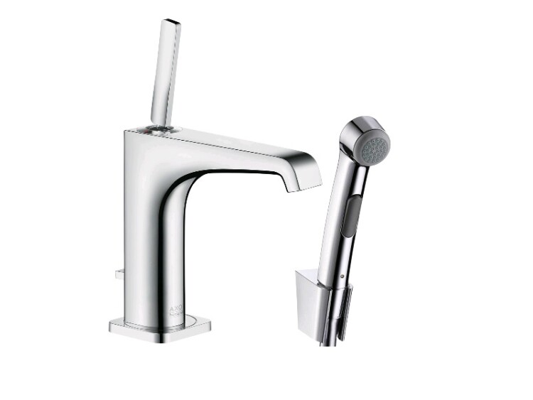 Смеситель для раковины, Hansgrohe, Axor Citterio E, тип открывания воды-однорычажный, тип регулирования воды-керамический узел смешивания, отверстия для монтажа-2, высота, мм-236, вынос излива, мм-143, вид ручки-джойстикового типа, стандарт подвода воды-3/8", комплектация-гигиенический душ для биде, шланг для гигиенического душа,мм-1600, держатель для гигиенического душа, цвет-полированное золото Смеситель для раковины, Hansgrohe, Axor Citterio E, цвет-полированное золото
