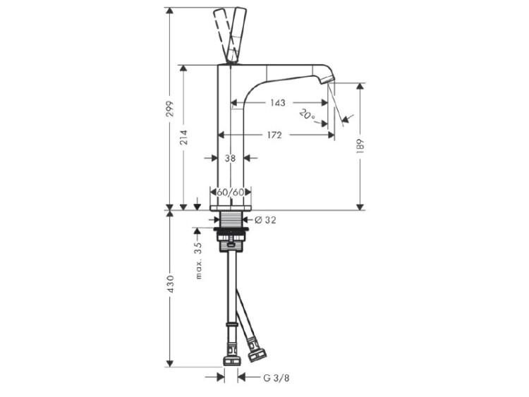 Смеситель для раковины, Hansgrohe, Axor Citterio E, тип открывания воды-однорычажный, тип регулирования воды-керамический узел смешивания, отверстия для монтажа-1, высота, мм-299, вынос излива, мм-143, вид ручки-джойстикового типа, стандарт подвода воды-3/8", цвет-шлифованное золото Смеситель для раковины, Hansgrohe, Axor Citterio E, цвет-шлифованное золото