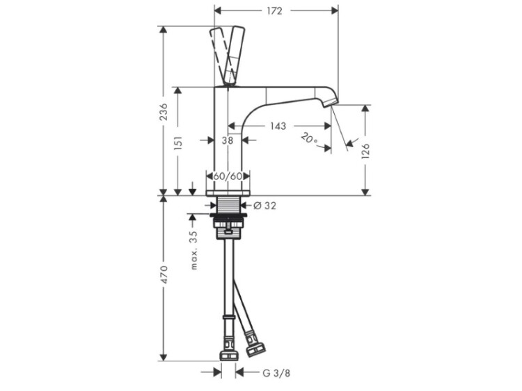 Смеситель для раковины, Hansgrohe, Axor Citterio E, тип открывания воды-однорычажный, тип регулирования воды-керамический узел смешивания, отверстия для монтажа-1, высота, мм-236, вынос излива, мм-143, вид ручки-джойстикового типа, тип подводки-гибкая, стандарт подвода воды-3/8", цвет-шлифованный черный хром Смеситель для раковины, Hansgrohe, Axor Citterio E, цвет-шлифованный черный хром