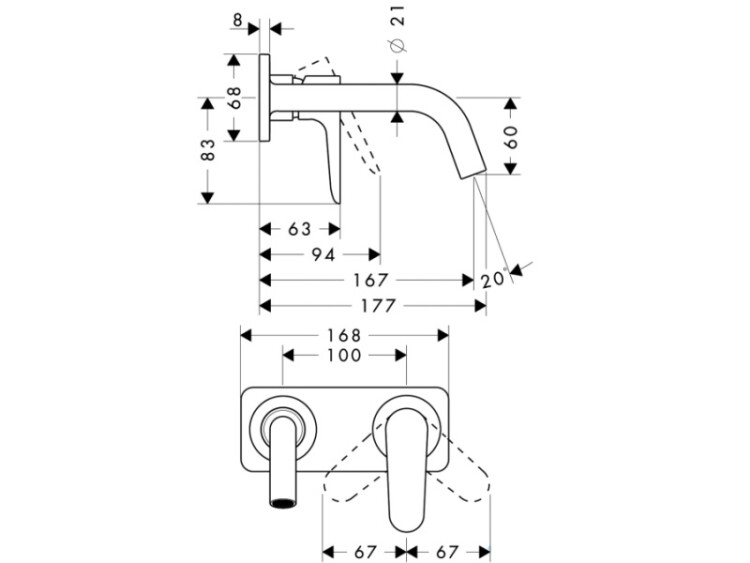 Смеситель для раковины, Hansgrohe, Axor Citterio M, тип открывания воды-однорычажный, тип регулирования воды-керамический узел смешивания, тип установки-настенный, отверстия для монтажа-2, вынос излива, мм-167, внутренняя часть-необходимо заказать, цвет-хром, с панелью Смеситель для раковины, Hansgrohe, Axor Citterio M, цвет-хром