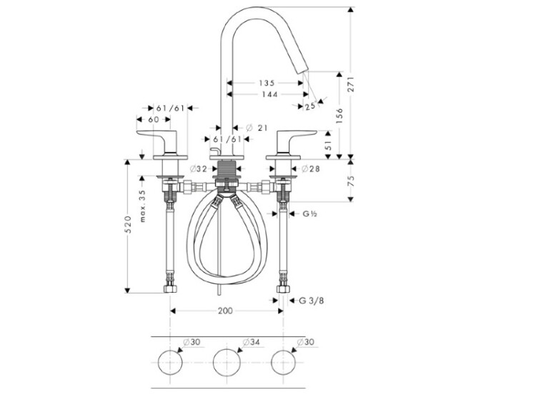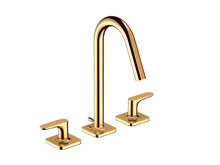 Смеситель для раковины, Hansgrohe, Axor Citterio M, тип открывания воды-двухрычажный, тип регулирования воды-керамический вентиль, отверстия для монтажа-3, высота, мм-271, вынос излива, мм-135, тип излива-короткий, стандарт подвода воды-3/8", цвет-полированное золото Смеситель для раковины, Hansgrohe, Axor Citterio M, цвет-полированное золото