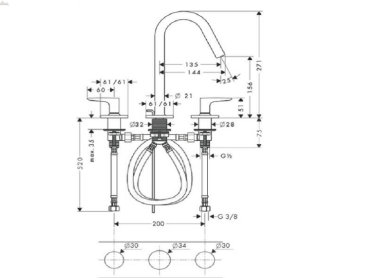 Смеситель для раковины, Hansgrohe, Axor Citterio M, тип открывания воды-двухрычажный, тип регулирования воды-керамический вентиль, отверстия для монтажа-3, вынос излива, мм-135, донный клапан-есть, цвет-полированный черный хром Смеситель для раковины, Hansgrohe, Axor Citterio M, цвет-полированный черный хром