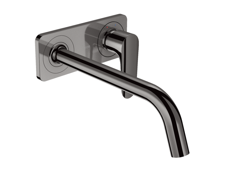 Смеситель для раковины, Hansgrohe, Axor Citterio M, тип открывания воды-однорычажный, тип регулирования воды-керамический узел смешивания, тип установки-настенный, отверстия для монтажа-2, вынос излива, мм-227, внутренняя часть-необходимо заказать, цвет-полированный черный хром, с панелью Смеситель для раковины, Hansgrohe, Axor Citterio M, цвет-полированный черный хром
