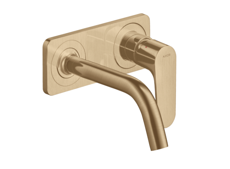 Смеситель для раковины, Hansgrohe, Axor Citterio M, тип открывания воды-однорычажный, тип регулирования воды-керамический узел смешивания, тип установки-настенный, вынос излива, мм-167, внутренняя часть-необходимо заказать, цвет-шлифованная бронза, с панелью Смеситель для раковины, Hansgrohe, Axor Citterio M, цвет-шлифованная бронза