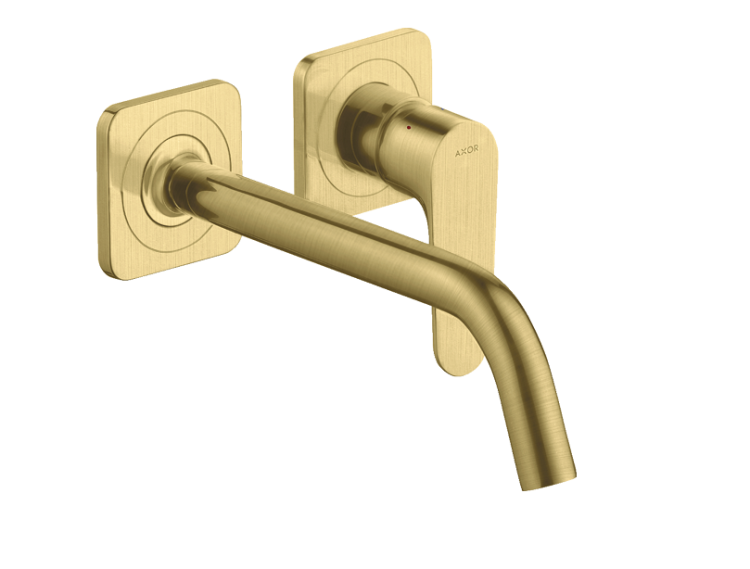 Смеситель для раковины, Hansgrohe, Axor Citterio M, тип открывания воды-однорычажный, тип регулирования воды-керамический узел смешивания, тип установки-настенный, отверстия для монтажа-2, вынос излива, мм-227, внутренняя часть-необходимо заказать, цвет-шлифованная медь, с возможностью размещения рукоятки справа или слева Смеситель для раковины, Hansgrohe, Axor Citterio M, цвет-шлифованная медь