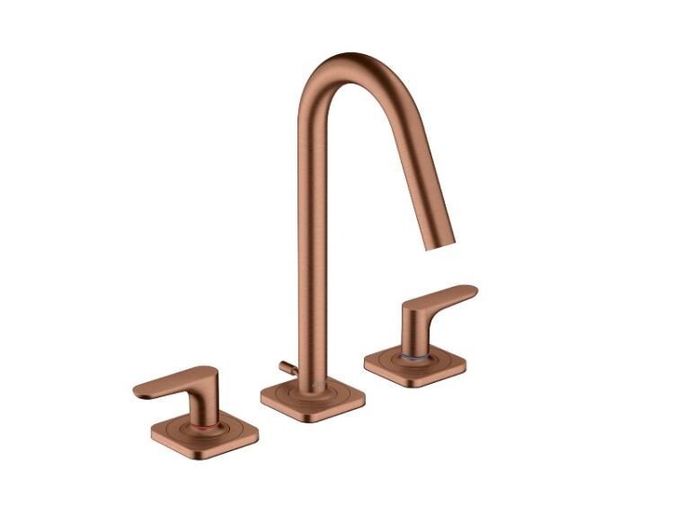 Смеситель для раковины, Hansgrohe, Axor Citterio M, тип открывания воды-двухрычажный, тип регулирования воды-керамический вентиль, отверстия для монтажа-3, высота, мм-271, вынос излива, мм-135, тип излива-короткий, вид ручки-рукоятка, стандарт подвода воды-3/8", цвет-шлифованное красное золото Смеситель для раковины, Hansgrohe, Axor Citterio M, цвет-шлифованное красное золото
