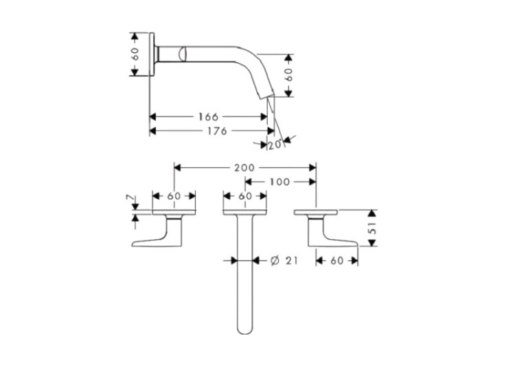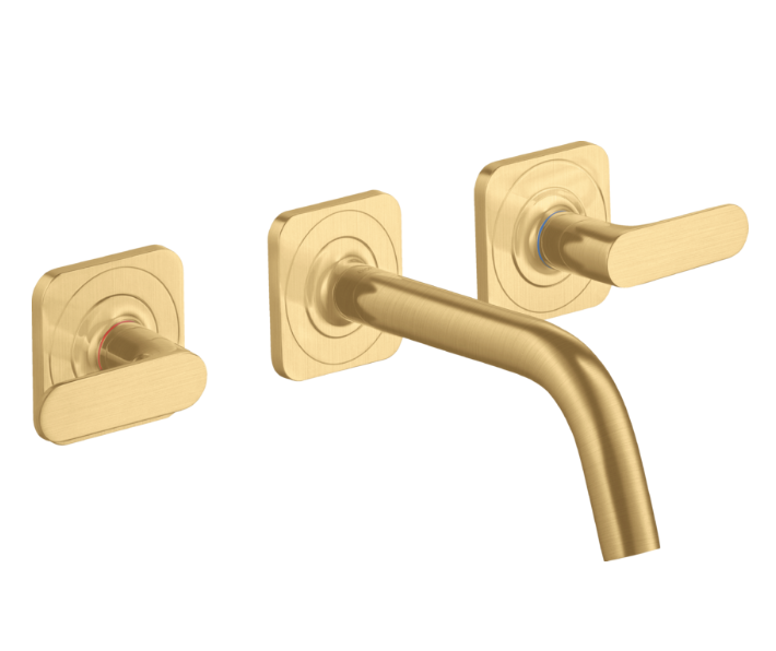 Смеситель для раковины, Hansgrohe, Axor Citterio M, тип открывания воды-двухрычажный, тип регулирования воды-керамический вентиль, тип установки-настенный, отверстия для монтажа-3, вынос излива, мм-166, внутренняя часть-необходимо заказать, цвет-шлифованное золото Смеситель для раковины, Hansgrohe, Axor Citterio M, цвет-шлифованное золото