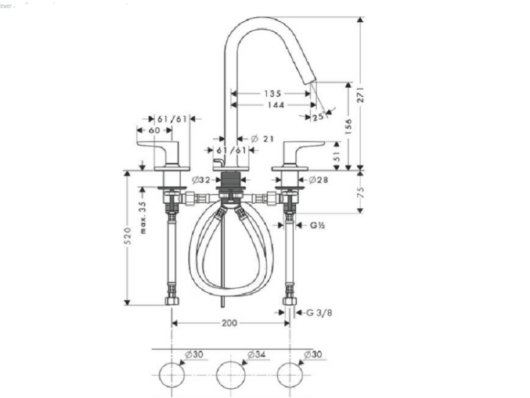 Смеситель для раковины, Hansgrohe, Axor Citterio M, тип открывания воды-двухрычажный, тип регулирования воды-керамический вентиль, отверстия для монтажа-3, высота, мм-271, вынос излива, мм-135, тип излива-короткий, стандарт подвода воды-3/8", цвет-шлифованный черный хром Смеситель для раковины, Hansgrohe, Axor Citterio M, цвет-шлифованный черный хром