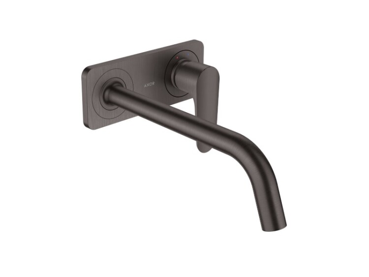 Смеситель для раковины, Hansgrohe, Axor Citterio M, тип открывания воды-однорычажный, тип регулирования воды-керамический узел смешивания, тип установки-настенный, отверстия для монтажа-2, вынос излива, мм-227, внутренняя часть-необходимо заказать, цвет-шлифованный черный хром, с панелью Смеситель для раковины, Hansgrohe, Axor Citterio M, цвет-шлифованный черный хром