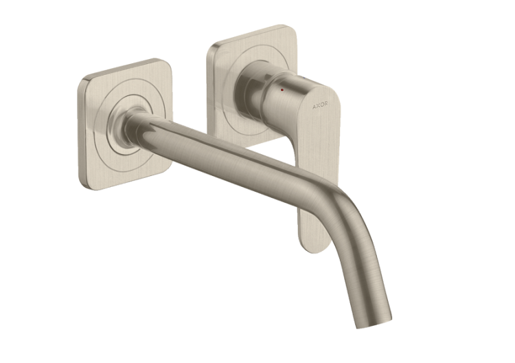 Смеситель для раковины, Hansgrohe, Axor Citterio M, тип открывания воды-однорычажный, тип регулирования воды-керамический узел смешивания, тип установки-настенный, отверстия для монтажа-2, вынос излива, мм-227, внутренняя часть-необходимо заказать, цвет-шлифованный никель, с возможностью размещения рукоятки справа или слева Смеситель для раковины, Hansgrohe, Axor Citterio M, цвет-шлифованный никель