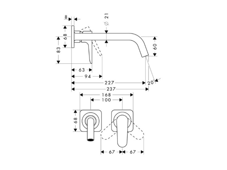 Смеситель для раковины, Hansgrohe, Axor Citterio M, тип открывания воды-однорычажный, тип регулирования воды-керамический узел смешивания, тип установки-настенный, отверстия для монтажа-2, вынос излива, мм-227, внутренняя часть-необходимо заказать, цвет-сталь, с возможностью размещения рукоятки справа или слева Смеситель для раковины, Hansgrohe, Axor Citterio M, цвет-сталь
