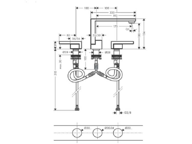 Смеситель для раковины, Hansgrohe, Axor Edge, тип открывания воды-двухвентильный, отверстия для монтажа-3, высота, мм-160, вынос излива, мм-178, цвет-хром Смеситель для раковины, Hansgrohe, Axor Edge, цвет-хром