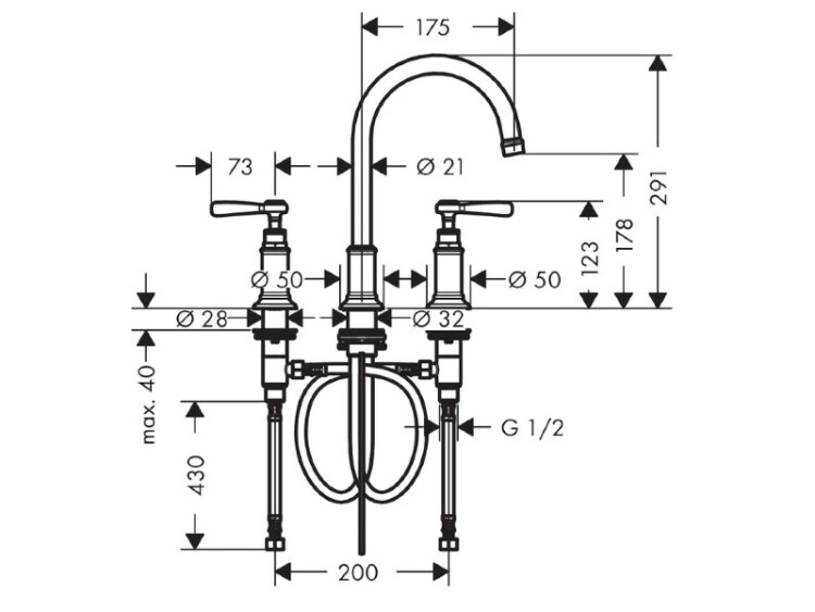 Смеситель для раковины, Hansgrohe, Axor Montreux, тип открывания воды-двухрычажный, тип регулирования воды-керамический вентиль, отверстия для монтажа-3, высота, мм-291, вынос излива, мм-175, тип излива-поворотный, угол поворота излива-120°, вид ручки-рукоятка, донный клапан-есть, цвет-хром Смеситель для раковины, Hansgrohe, Axor Montreux, цвет-хром